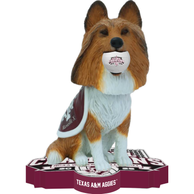 Pre-order your Texas A&M Aggies 2025 Women's Volleyball National Champions Bobblehead. The bobblehead, which celebrates Texas A&M's 2025 National Championship, features Reveille X standing on the championship logo base and holding a volleyball in her mouth. Texas A&M defeated Kentucky by a score of 3-0 on December 21st, 2025 at T-Mobile Center in Kansas City, Missouri to capture the 2025 title. It is officially licensed by Texas A&M University and the NCAA.