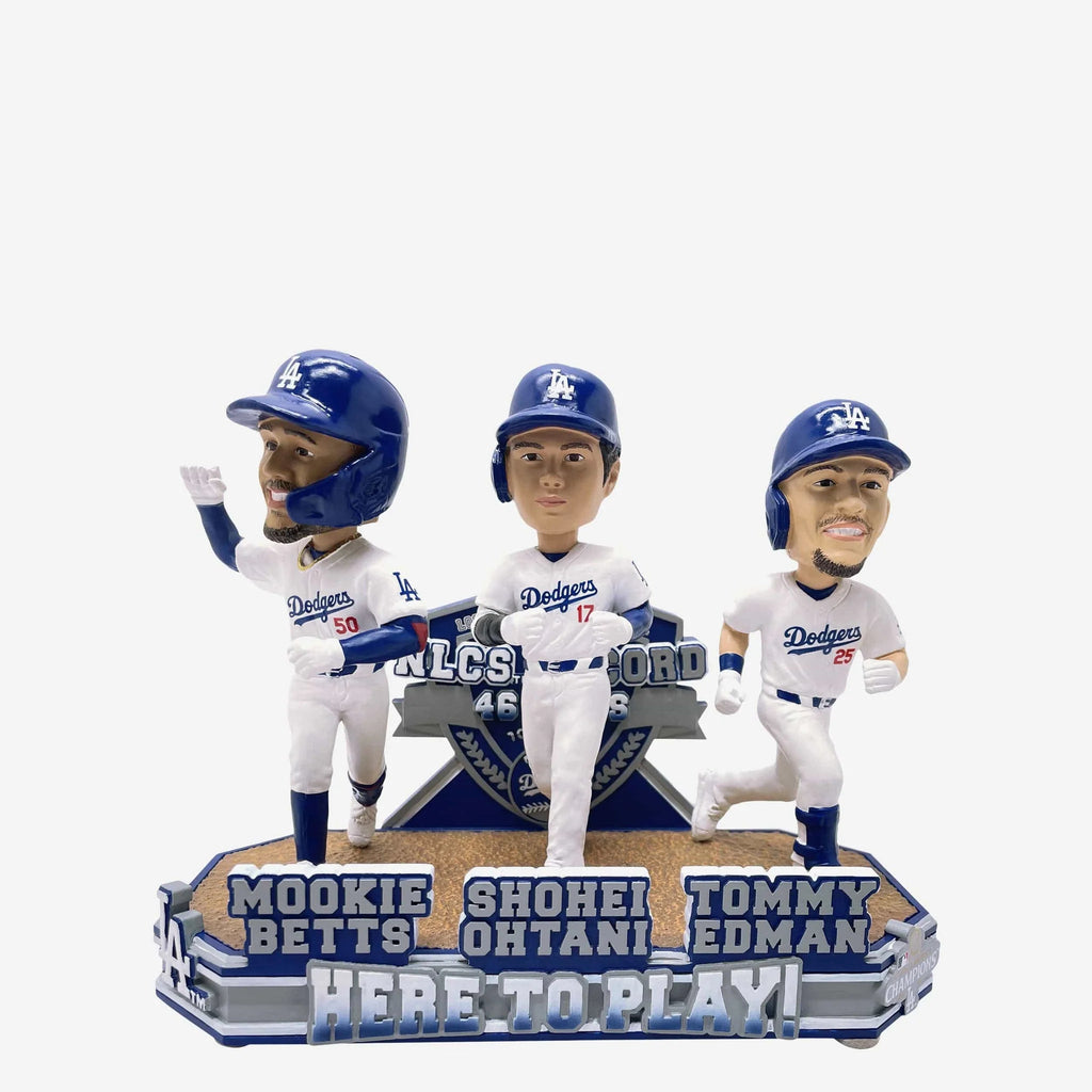 Order your Shohei Ohtani, Mookie Betts & Tommy Edman Los Angeles Dodgers Most Runs In NLCS History Mini Bobblehead Scene MLB Baseball Bobblehead before it's too late. A very limited quantity are available for this new arrival, so don't miss out!