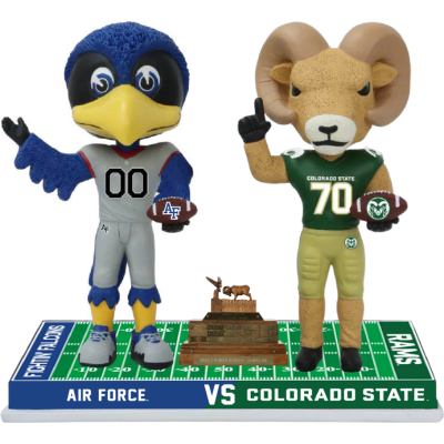 This bobblehead celebrates the Air Force vs. Colorado State Football Rivalry and features vintage style bobbleheads with school colors and logos. The bobblehead commemorates the longtime football rivalry, which dates back to 1898. It is officially licensed by the United States Air Force Academy and Colorado State University.
