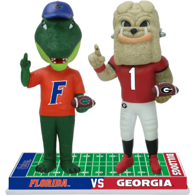 This bobblehead celebrates the Florida vs. Georgia Football Rivalry and features Florida's mascot Albert Gator and Georgia's mascot Hairy Dawg. The bobblehead commemorates the longtime football rivalry, which dates back to the early 1900's. It is officially licensed by the University of Florida and the University of Georgia.